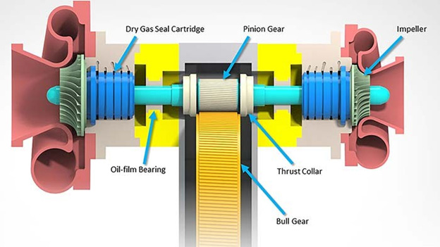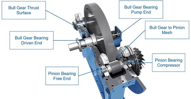 • Gearbox assemblies and critical gear components — Pinion gears, bull gears and complete gearbox units in integrally geared designs.